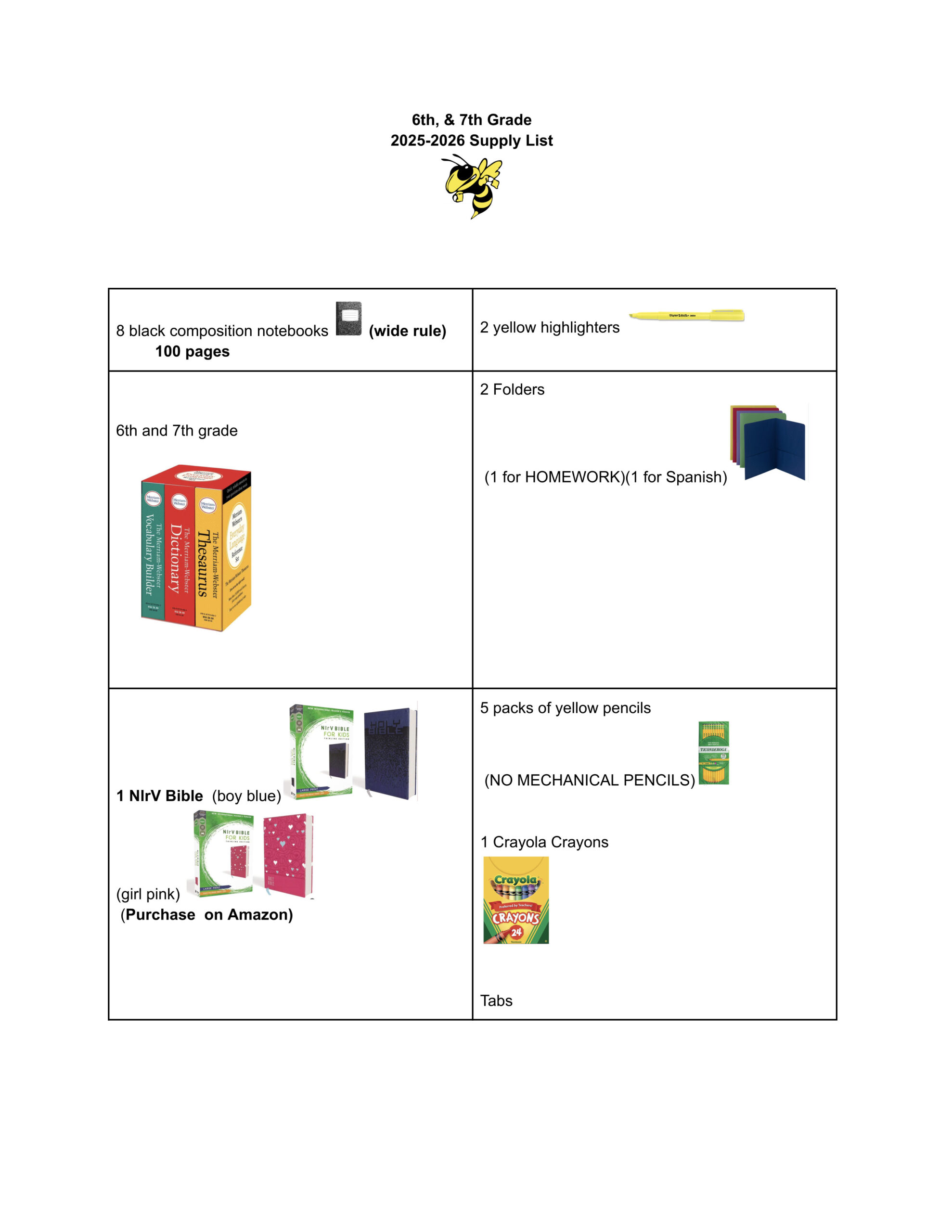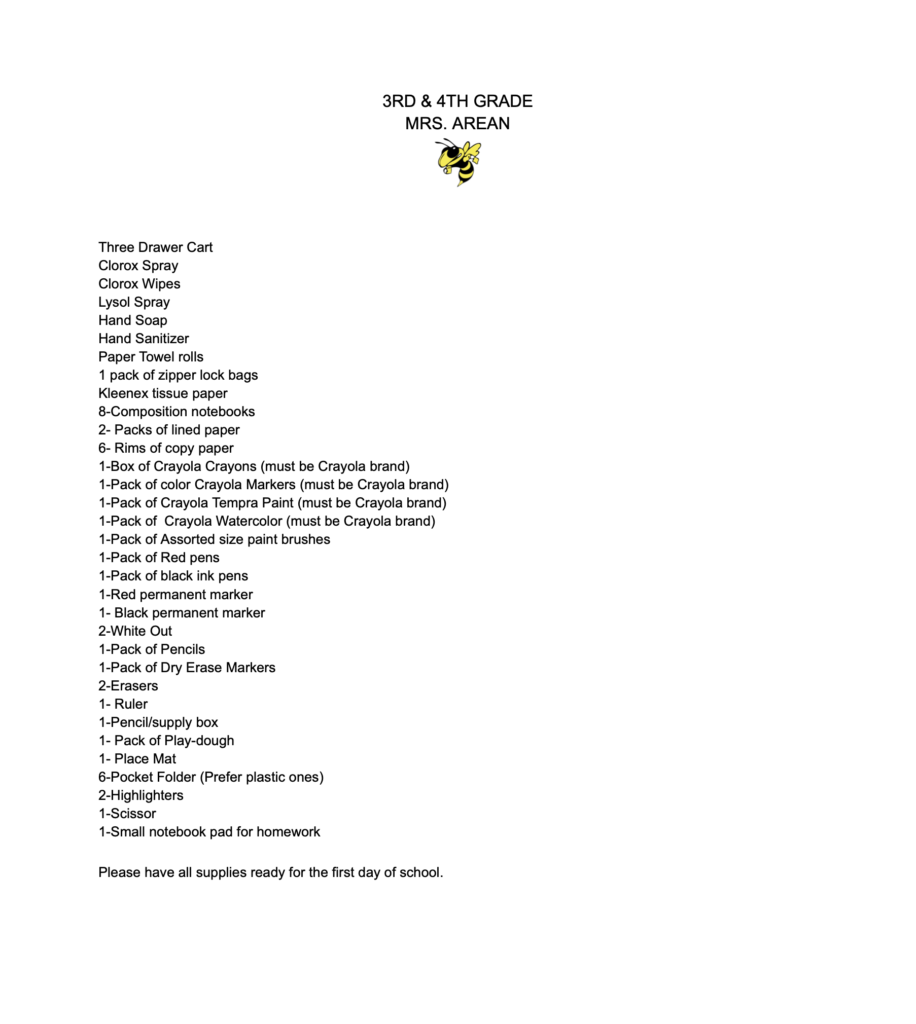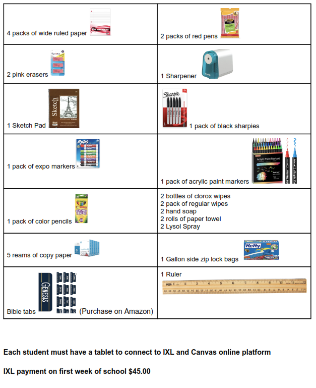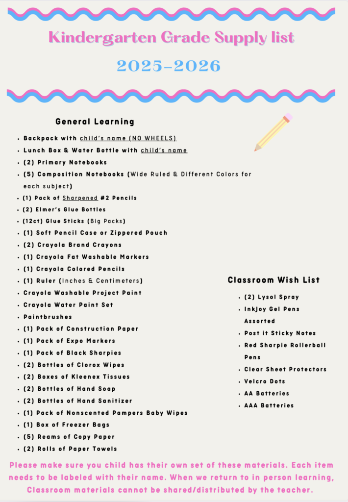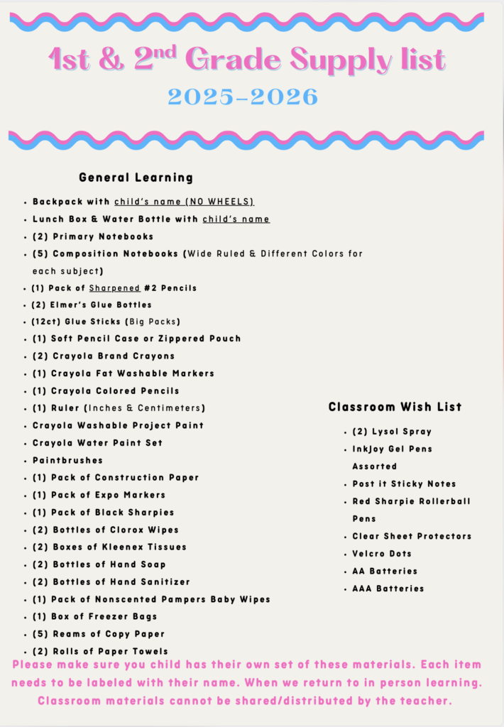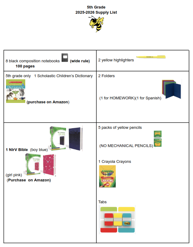 If you have any questions about supply lists or need assistance preparing for the school year, please contact our school office: