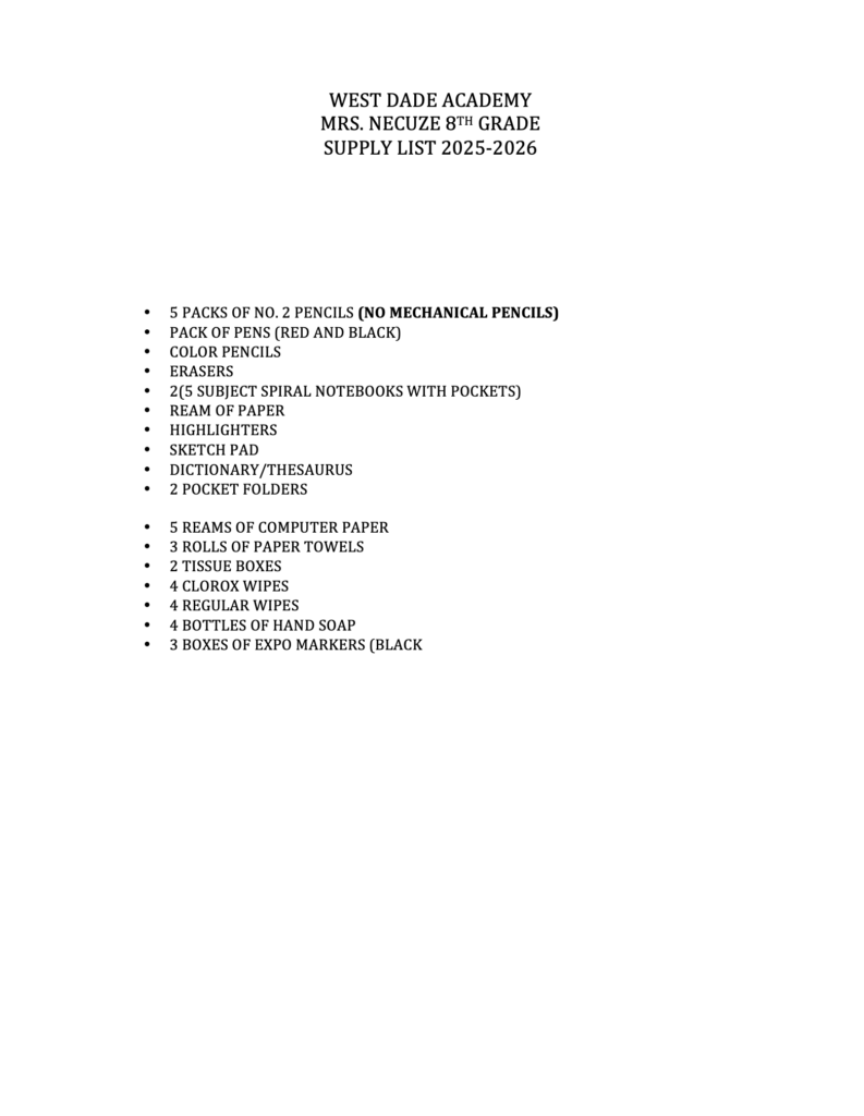 Having the right supplies sets students up for academic achievement and organizational success. Below you’ll find detailed supply lists for each grade level at West Dade Academy. Download the appropriate list and ensure your child is ready for a productive and engaging school year.